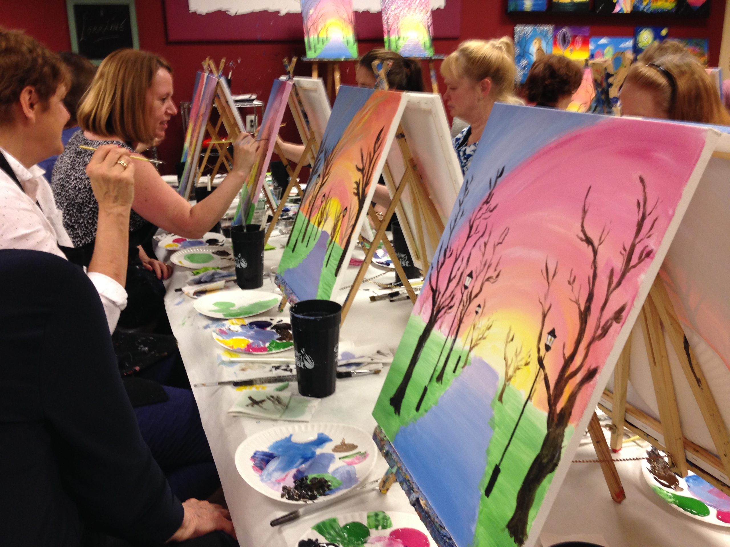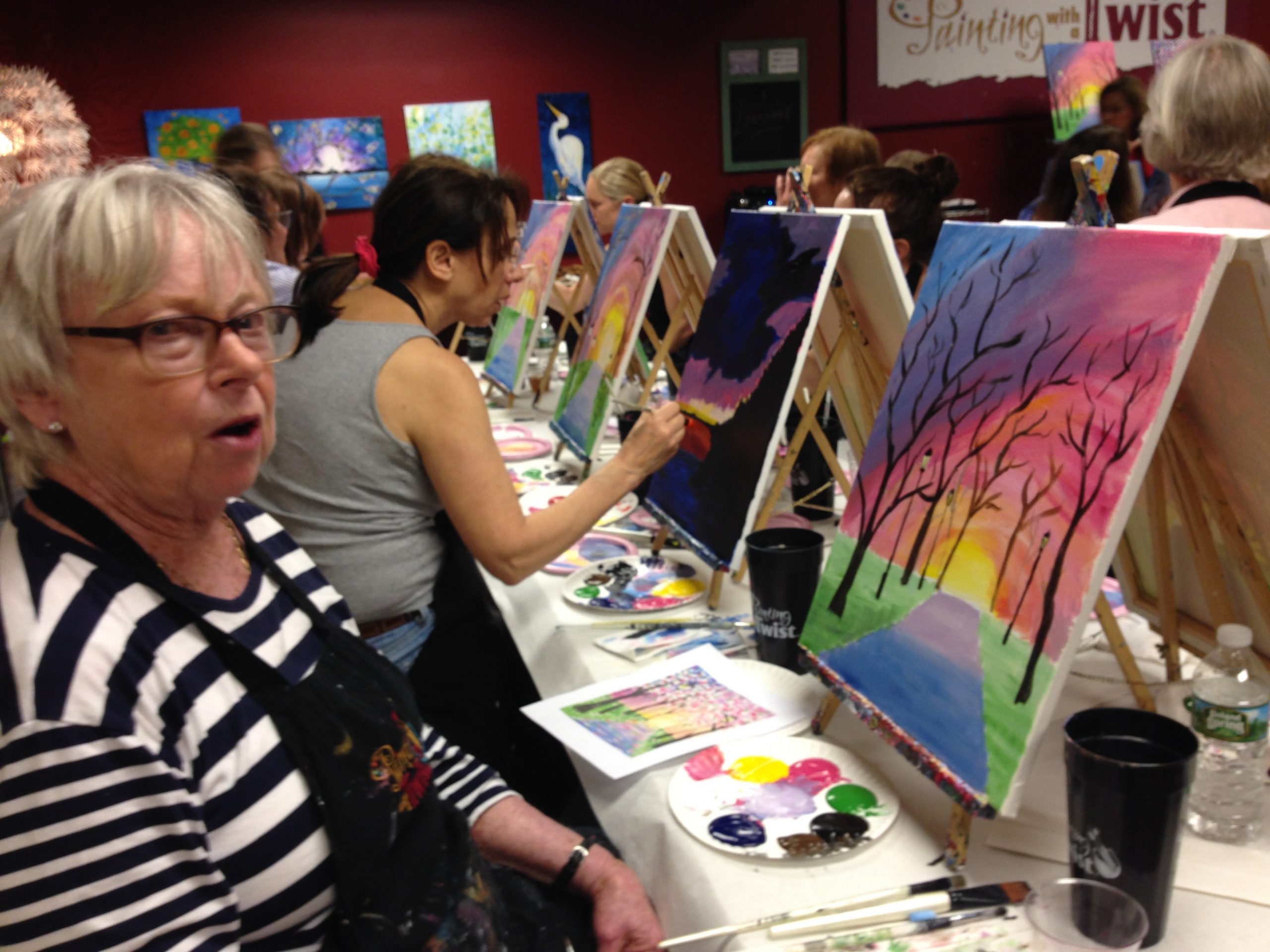 Participants painted "Spring Stroll" at the WWC Spring Fundraiser, Painting with a Twist on May 2nd.