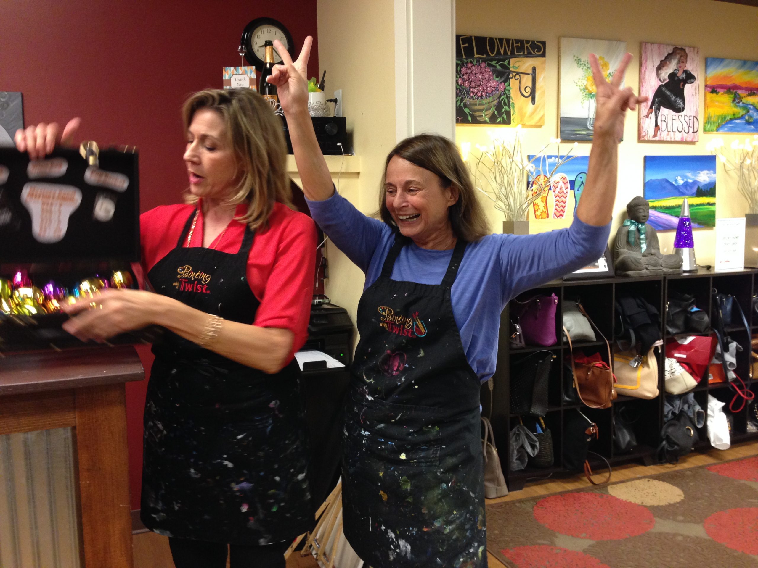 (Left to Right Dorothy M. Packer, President of Westport Woman's Club, together with Board Members Christina McVaney and Susan Fox (event chair), receive check in the amount of $700 from Janice McGuire, owner of "Painting with a Twist" following the Club's Fundraiser at the Westport Store, located at 1460 Post Rd East.