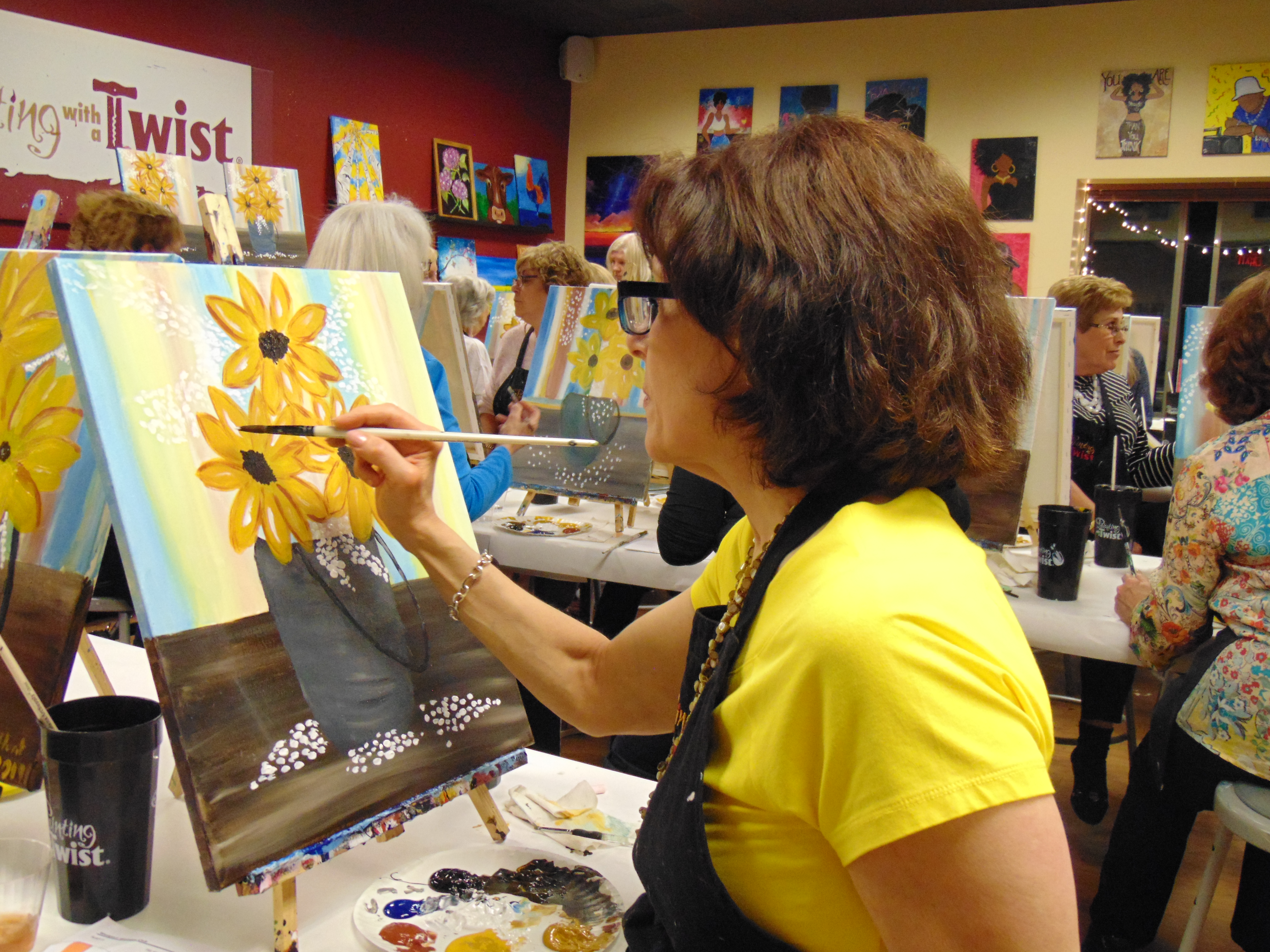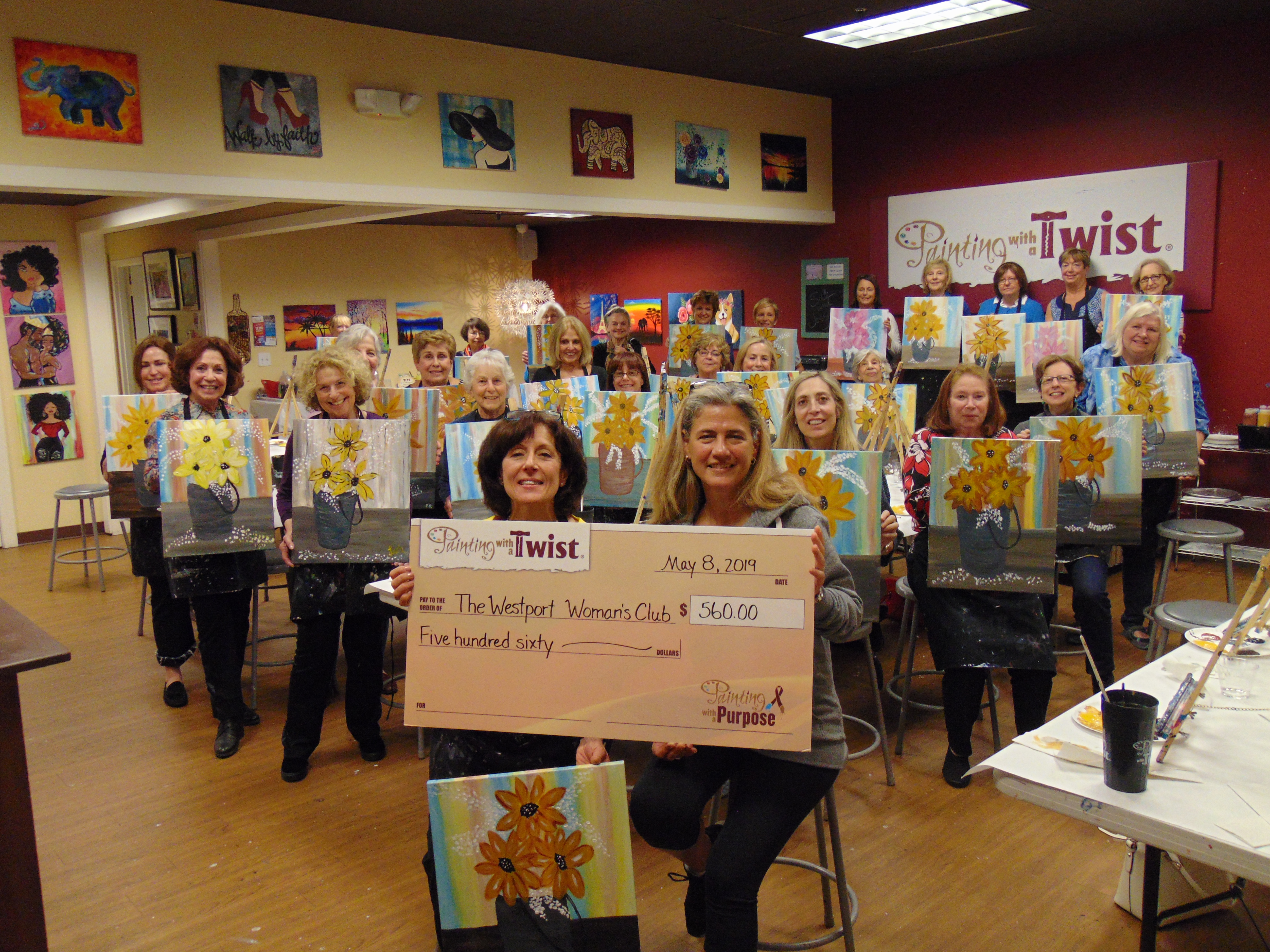 Westport Woman’s Club members gathered in early May for a Girls Night Out FUNdraiser at “Painting with a Twist” (1460 Post Road East, Westport). Music rocked, wine flowed, and members channeled their inner Van Gogh while painting “Sunflowers in Tin”. The evening raised over $500 for WWC charitable causes. Thanks to member Susan Fox for chairing and coordinating this memorable event, and gratitude to local business “Painting with a Twist” for supporting our philanthropic club.